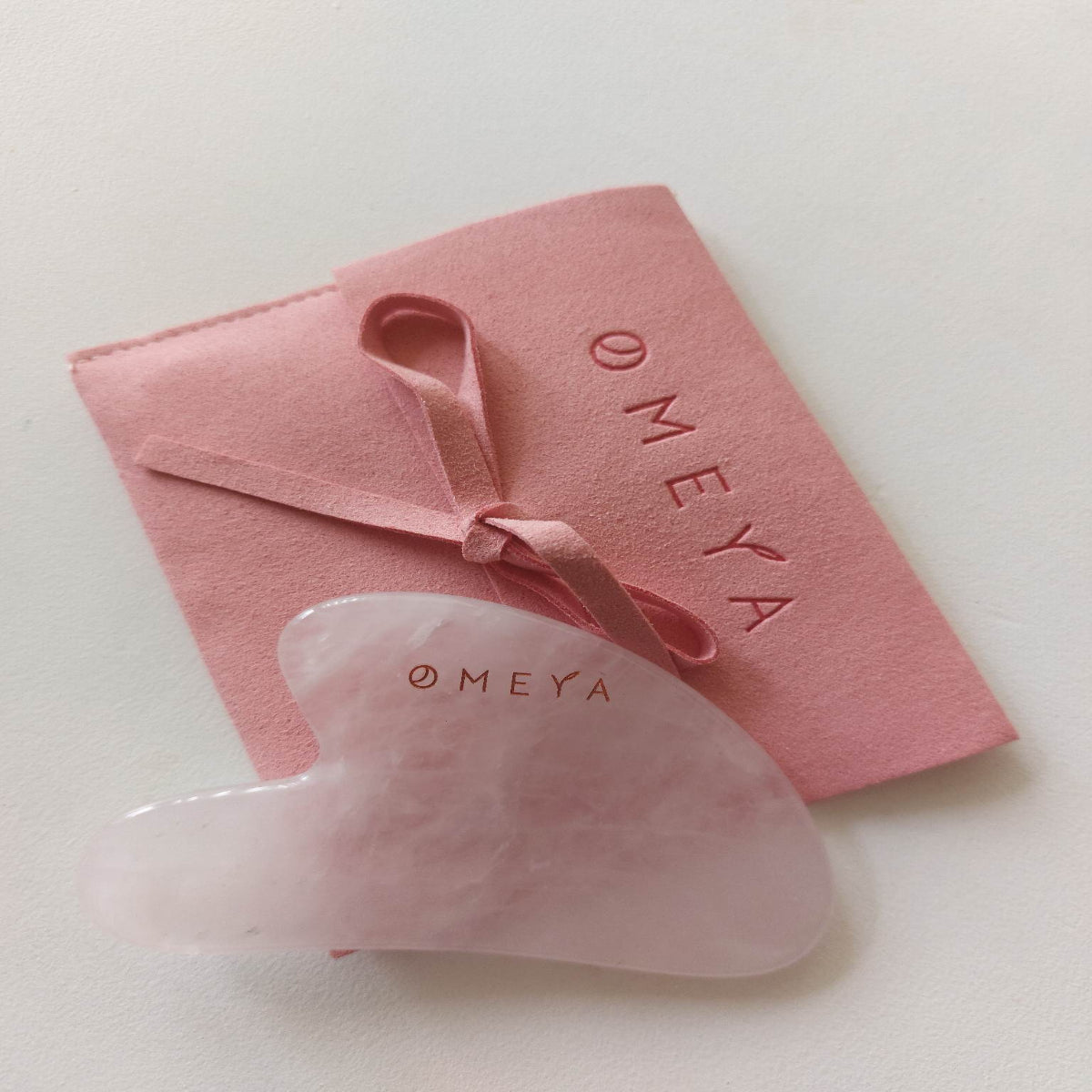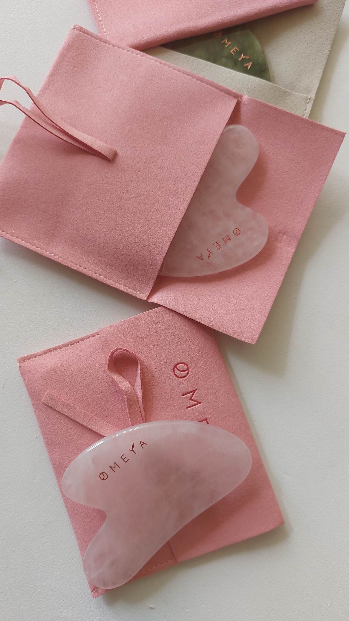 Гуа ша OMEXYA пристига във велурена луксозна торбичка за съхранение.